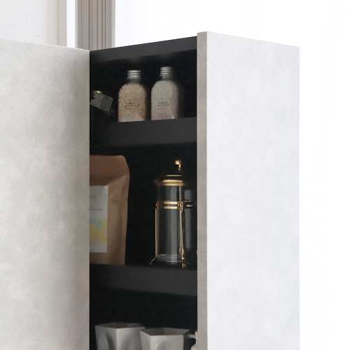 スリムなボディながら、内部は高さのある棚構成で収納量をしっかり確保し、