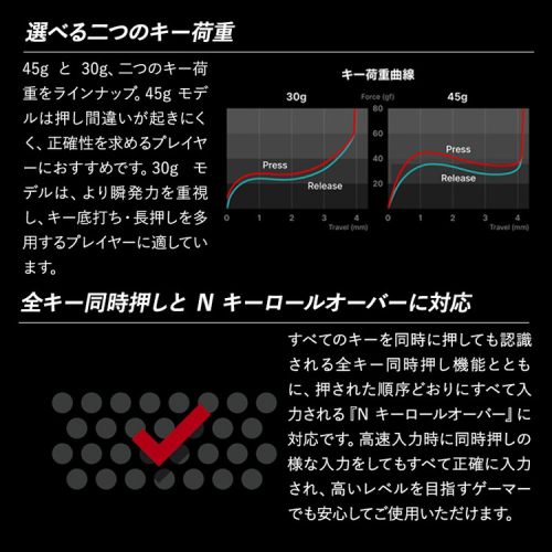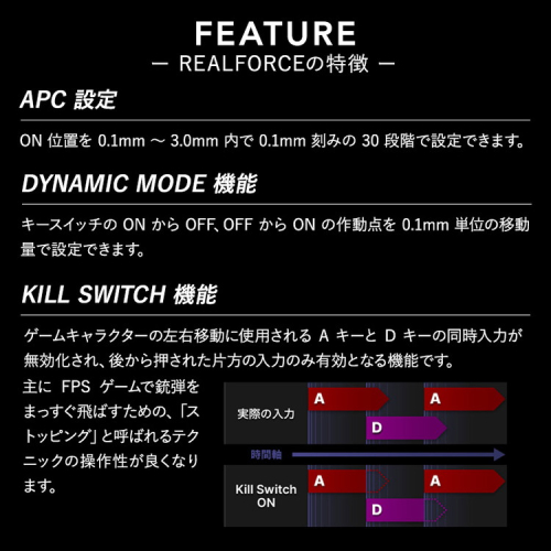 ・東プレ独自の APC機能により、各キースイッチのオン位置を調節でき、キースイッチの反応速度を最適化可能