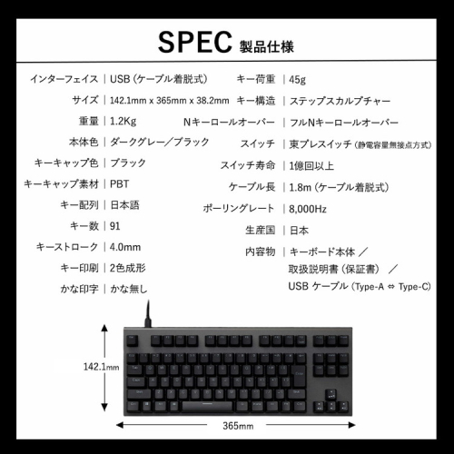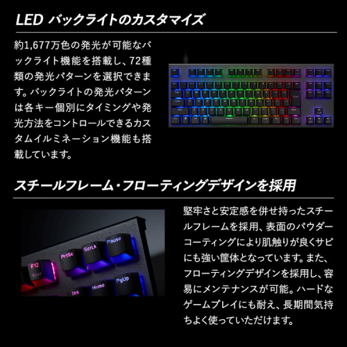 ・東プレスイッチと呼ばれる物理的な接点が無い静電容量無接点方式のキースイッチを搭載し、優れた信頼性と耐久性を実現