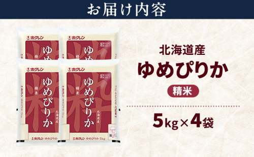 - ホクレン ゆめぴりか 精米 20kg(5kg×4袋)をお届けします。