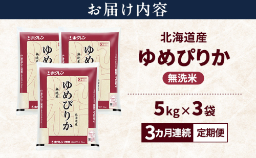 - 【3ヵ月連続定期便】北海道産 ゆめぴりか 無洗米 15kg 米 特A 獲得 白米 ごはん 定期便 定期配送 3ヵ月 道産米 ブランド米 15キロ お米 ご飯 米 北海道米 JAふらの ホクレン ホクレン米 送料無料 北海道 上富良野町