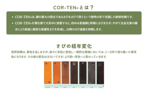 COR-TEN(登録商標)鋼の詳細は、メーカーのホームページをご覧ください。