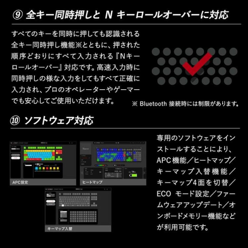 ・東プレ独自の APC機能により、各キースイッチのオン位置を調節でき、キースイッチの反応速度を最適化可能