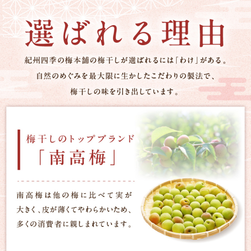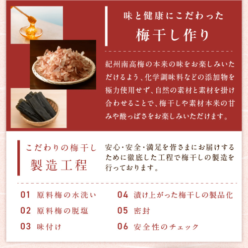 和歌山県産紀州南高梅を100%使用し、梅干しの種を一粒一粒丁寧に取り除きました。