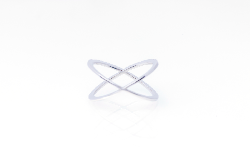 2本のラインが軽やかに交差するデザインが特徴のクロスリング。