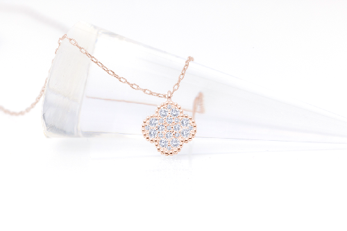 胸元にそっと幸運を添える、クローバーモチーフのダイヤモンドネックレス。