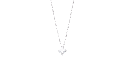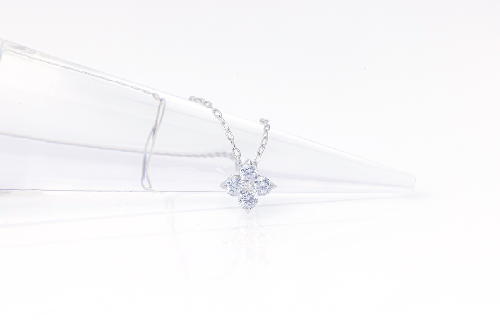 花のようにも、クローバーのようにも見える柔らかなフォルムが、胸元にやさしいきらめきを添えてくれます。