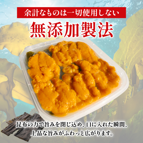 こちらの返礼品は、余計なものを一切加えない無添加製法で、うに本来の甘みと濃厚なコクを丁寧に引き出しました。