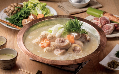 2.取り鉢にぽん酢とお好みの薬味(あさつき・柚胡椒など)を入れ、鶏肉、つくね等をお召しあがりください。その後、鍋に具材を加えお召しあがりください。(キャベツを入れるのが博多流。)