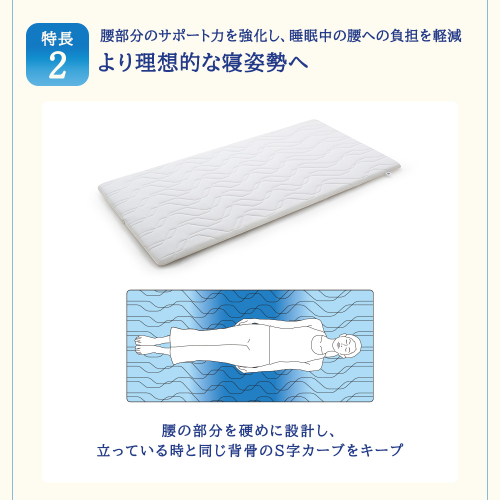 マットレストッパーシリーズの中で、腰部分のサポートを強化した機能性モデルです。