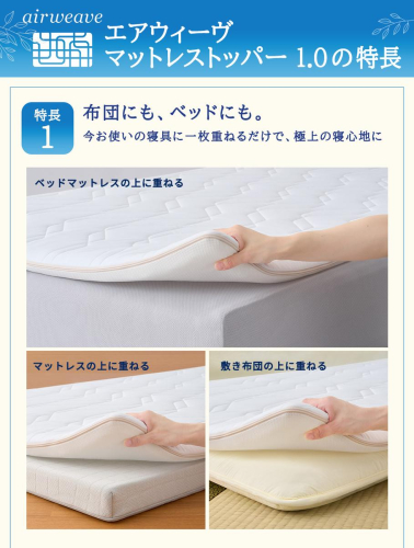 エアウィーヴ マットレストッパー1.0 ダブル マットレスパット マットレス コンパクト オールシーズン対応 ぐっすり ホテル 安眠 快眠 健康 高反発 高品質 腰 肩 熟睡 寝心地 新生活 洗える 洗濯可 送料無料 体圧分散