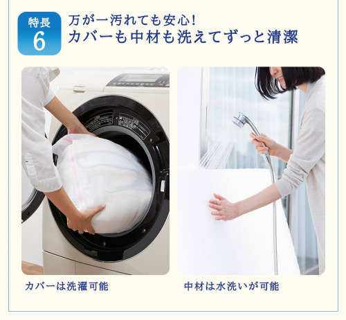 肌ざわりが良く通気性に優れた片面仕様のカバーで、お手入れや収納も楽に行えます。