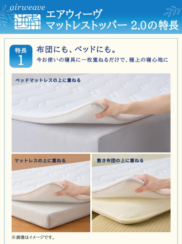 エアウィーヴ マットレストッパー2.0 ダブル 組立 マットレスパット マットレス コンパクト オールシーズン対応 ぐっすり ホテル 安眠 快眠 健康 高反発 高品質 腰 肩 熟睡 寝心地 新生活 洗える 洗濯可 送料無料 体圧分散