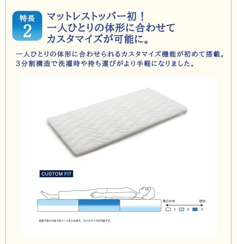 エアファイバー(3分割)の表裏で硬さが異なるマットレストッパーシリーズの最上位モデルです。