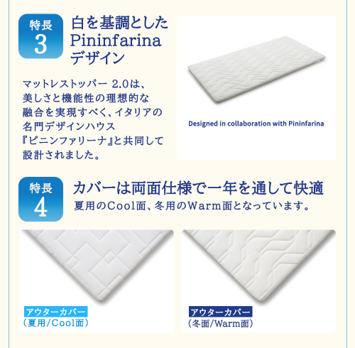 カバーは両面仕様で、表裏がWarm面とCool面となっており、一年を通して快適にご使用いただけます。