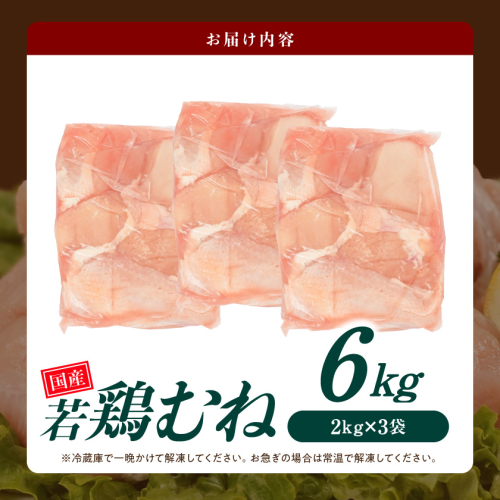 【業務用サイズ】国産若鶏むね肉 たっぷり2kg×3袋(合計6kg)