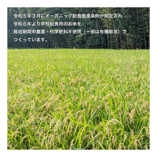 綾町では令和5年に全国に先駆けて綾町オーガニック給食推進条例を制定し、学校給食へオーガニックな米、野菜を安定的に供給できる体制づくりに取り組んでいます。
