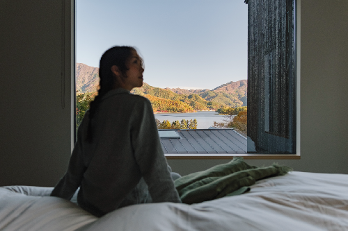 河口湖の静かな北岸に佇む、自然と調和する洗練されたリゾート。