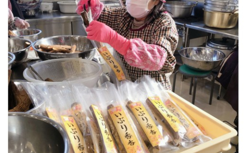 「いぶり香香」は秋田県の郷土料理の「いぶりがっこ」を参考にして、島根県立大学の学生と弥栄町のおばあちゃんたちが一緒に特産品化に取り組み、2015年に商品化しました。