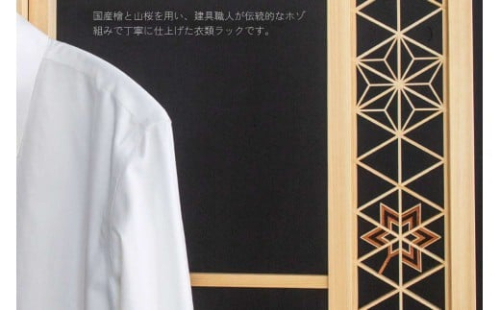 国産檜と山桜を用い、建具職人が伝統的なホゾ組みで丁寧に仕上げた衣類ラックです。