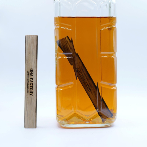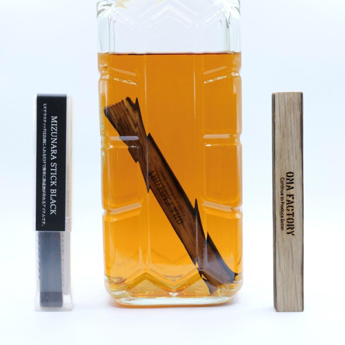 樽を、そのままボトルの中へ。希少な国産ミズナラが、お酒の香りと味わいを深めます。スティックを入れるだけで樽熟成のようなまろやかな一杯に。