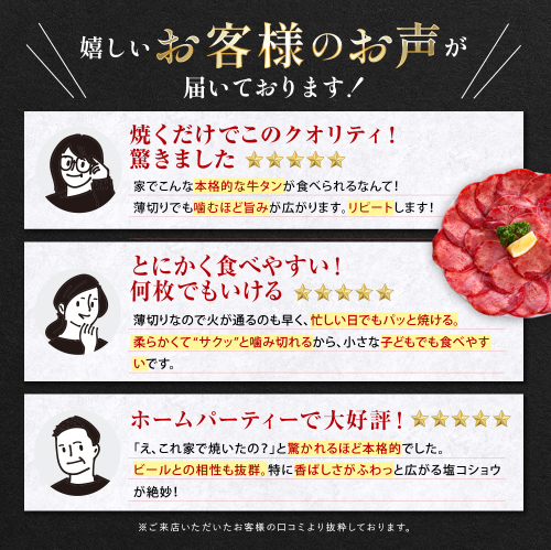 おすすめの食べ方は、さっと強火で焼いて塩をひとつまみ。牛タンとろろごはん、牛タン寿司、ごちそうサラダにも相性抜群です。脂の甘みと旨味が、ごはんを止まらなくします。