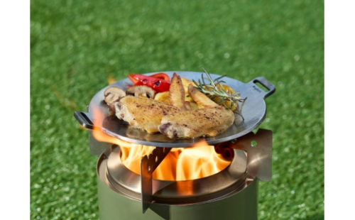 ソロストーブ メサXLでメスティンなど、小さいクッカーを使用したい時はクッキングリングに差し込み五徳として使え、本体下部の熱が心配な場合や、地場が安定しない時はスタンドとして使用できます。