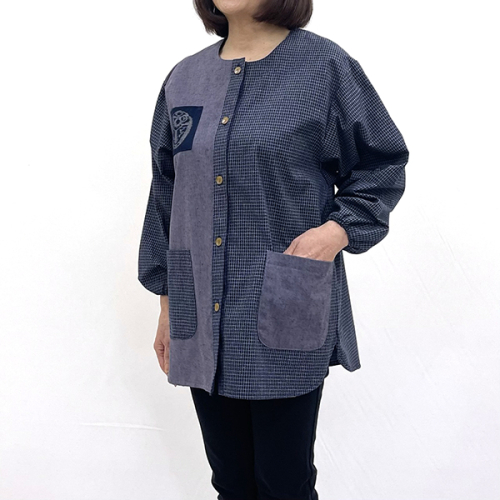 久留米織 民芸調スモック しおん色(パープルグレー)【BA059-PU】