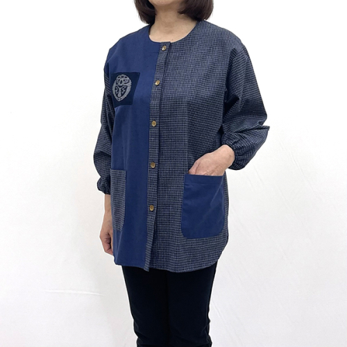 - 久留米織 民芸調スモック あい色(紺)