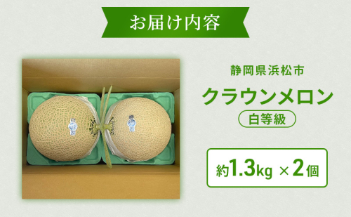【2026年5月6月限定出荷】 こだわり クラウンメロン 2個 白等級 約1.3kg クラウン メロン 贈答 高級 フルーツ 果物 静岡 浜松市【配送不可:離島】