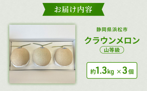 【2026年5月6月限定出荷】 こだわり クラウンメロン 3個 山等級 約1.3kg クラウン メロン 贈答 高級 フルーツ 果物 静岡 浜松市【配送不可:離島】