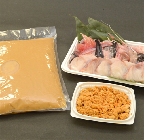 - あんこう身450g、あんこう肝ペースト100g、スープ1L、あんこう唐揚げ250g