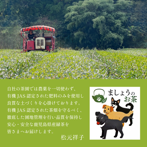 有機JAS認定された茶畑を守るべく、徹底した園地管理を行い品質を保持し安心・安全な鹿児島県産緑茶を皆さまへお届けします。