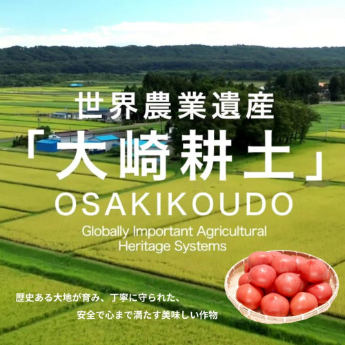 平成18年3月31日、古川市・松山町・三本木町・鹿島台町・岩出山町・鳴子町・田尻町の1市6町が合併し、大崎市が誕生しました。 大崎市は宮城県の北西部に位置し、東は遠田郡、登米市、西は山形県、秋田県に接し、南は黒川郡、加美郡、北は栗原市に接しています。 大崎市は東西に約80kmの長さを持ち、奥羽山脈から江合川と鳴瀬川の豊かな流れによって形成された、広大で肥沃な平野「大崎耕土」を有する四季折々の食材と天然資源そして地域文化の宝庫です。 「大崎耕土」は巧みな水管理システムが評価され、平成29年12月に「世界農業遺産」に認定されました。 お米をはじめとする豊かな土地が生み出す様々な食材をお楽しみください。