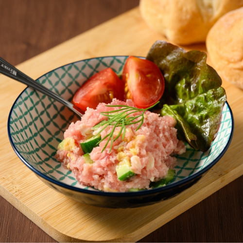 バババババターは定番のまぐろたたきに濃厚バターを加えたまぐろのたたきです。