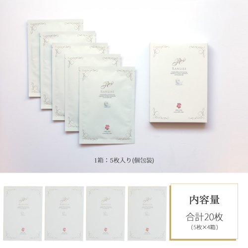 - RANLISE(ランリーゼ) プレミアムフェイスマスク 個包装 5枚入×4箱 プラセンタ配合 ダマスクローズ香る 日本製 シートマスク 化粧箱入り【ランリーゼ】