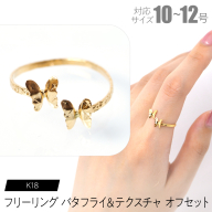 【K18 フリーリング フラワーバタフライ&スムース オフセット|さりげなく、あそび心を咲かせる】