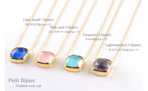 上側:クォーツ(水晶) 8×8mm、クッションローズカボションカット