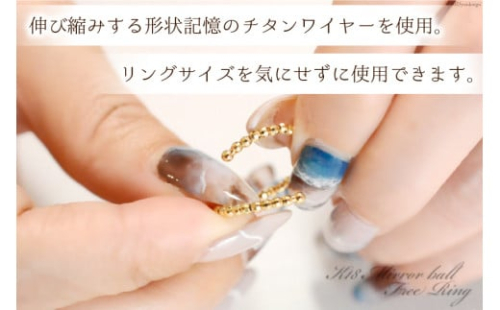 ひとつひとつキラキラと輝くミラーボール、伸び縮みする形状記憶のチタンワイヤーを使用しており、リングサイズを気にせずに使用できます。