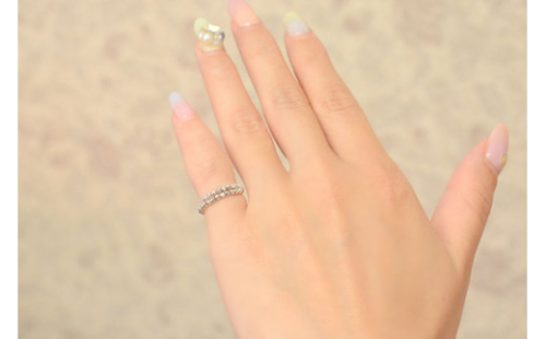 ひとつひとつキラキラと輝くミラーボール、伸び縮みする形状記憶のチタンワイヤーを使用しており、リングサイズを気にせずに使用できます。