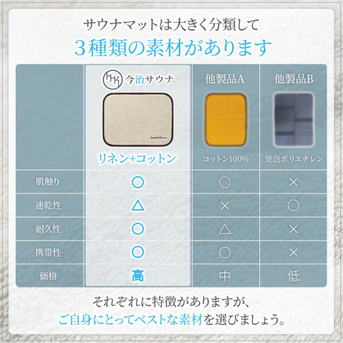 今治サウナマット 一人用 リネン & コットン素材