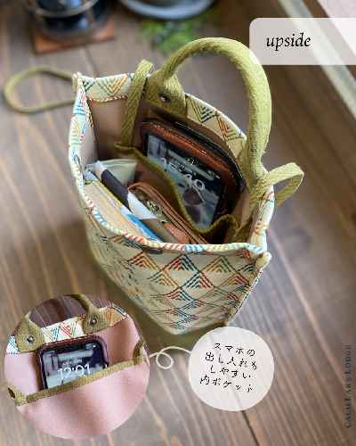 素材:表生地-麻55% × 綿45% (抗菌/制菌加工) /内生地-合皮レザー /ホック-鉄/ループエンド-木