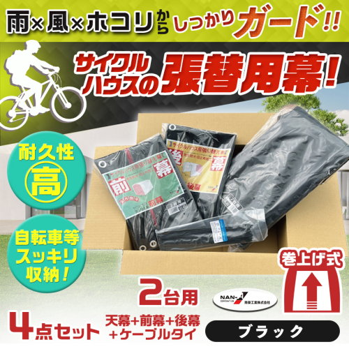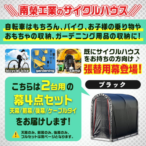 • 張替用幕4点セット サイクルハウス2台用 BK(ブラック)_32-J407