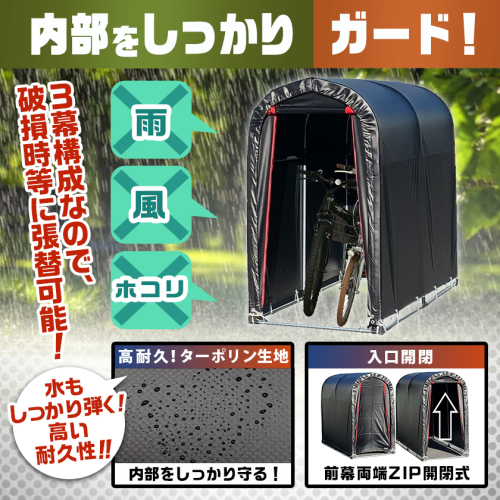 パイプ車庫の実績と性能をそのままサイクルハウスに応用しました。自転車やバイクはもちろん、お子様の乗り物やおもちゃの収納、ガーデニング用品の収納にもとても便利なサイクルハウスの張替用の幕(天幕・前幕・後幕)とケーブルタイの4点セットです。