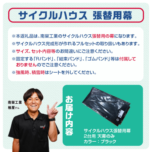 ※本返礼品は、南榮工業のサイクルハウス2台用の張替用の天幕になります。