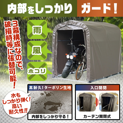 パイプ車庫の実績と性能をそのままサイクルハウスに応用しました。自転車やバイクはもちろん、お子様の乗り物やおもちゃの収納、ガーデニング用品の収納にもとても便利なサイクルハウスの張替用の天幕です。