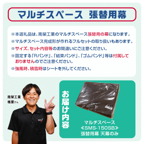 ※本返礼品は、南榮工業のマルチスペース〈SMS-150〉の張替用の天幕になります。