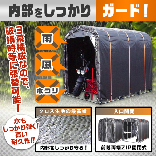 パイプ車庫の実績と性能をそのままサイクルハウスに応用しました。自転車やバイクはもちろん、お子様の乗り物やおもちゃの収納、ガーデニング用品の収納にもとても便利なサイクルハウスの張替用の後幕です。