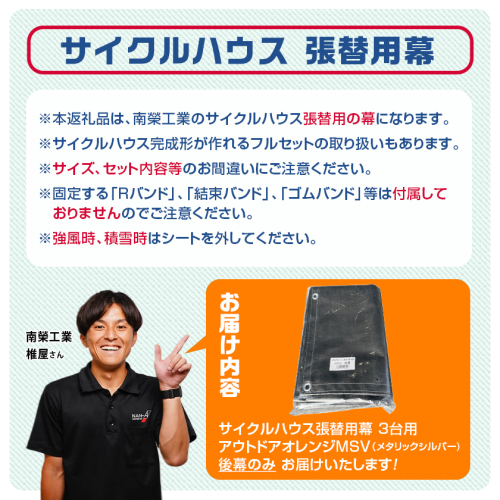 ※本返礼品は、南榮工業のサイクルハウス アウトドアオレンジの張替用の後幕になります。