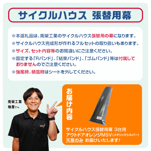 ※本返礼品は、南榮工業のサイクルハウス アウトドアオレンジの張替用の天幕になります。